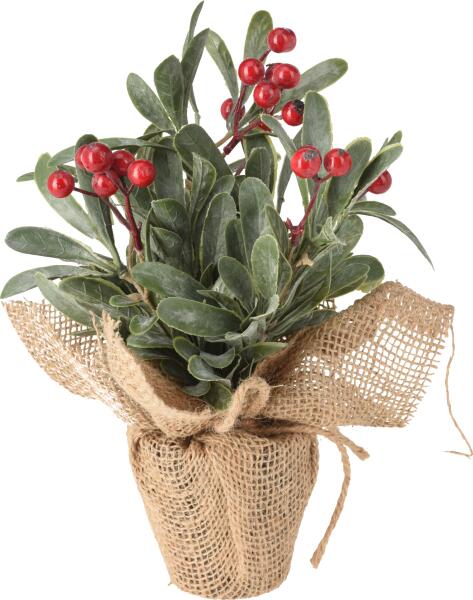 Műnövény Piros Bogyóval Zsákvászonban 23cm